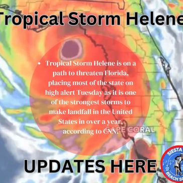 Many beaches in Sarasota County are experiencing unsafe conditions, erosion, and debris due to Hurricane Helene. As Sarasota County continues to recover from the storm, lifeguards will not be present on Sarasota County owned and/or operated beaches until conditions allow for safe access and use.