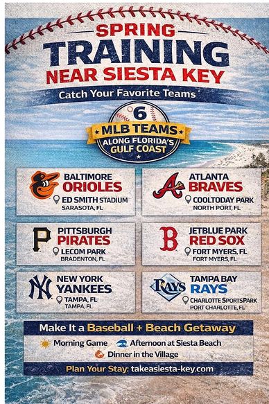 As the Gulf Coast basks in sunshine and winter recedes, baseball enthusiasts head to Florida’s west coast to partake in a cherished American sports tradition — Baseball Spring Training! Located just a short drive from Siesta Key, the Sarasota-Bradenton area and cities nearby transform into a hub for America’s pastime every February and March as Major League Baseball teams gear up for the upcoming season.